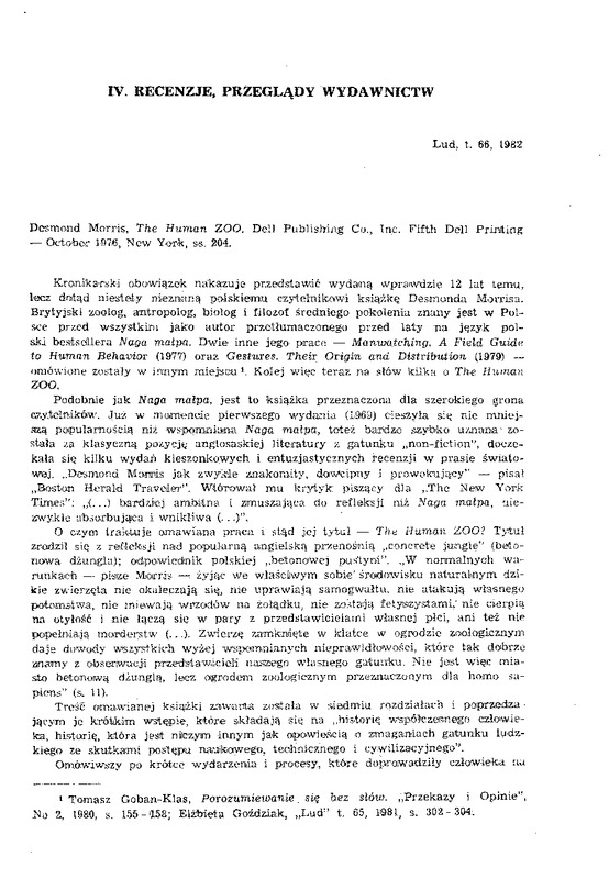 Recenzje, przeglądy wydawnictw / LUD 1982 t.66