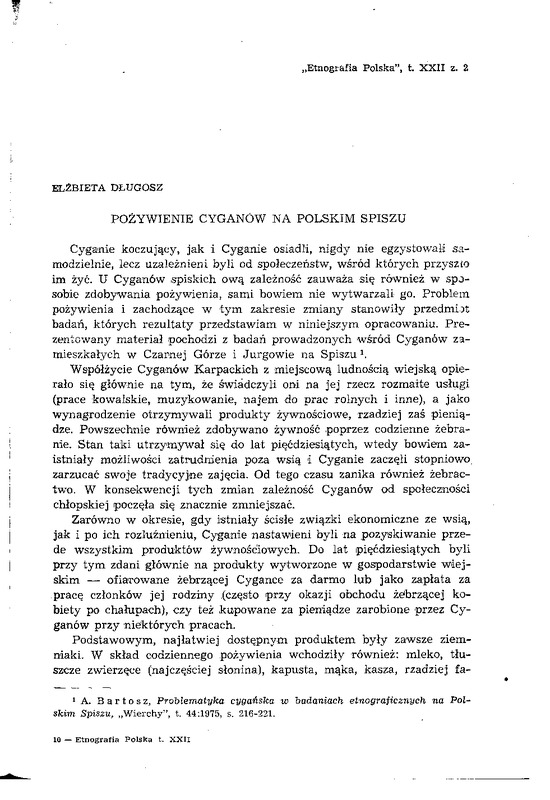 Pożywienie Cyganów na polskim Spiszu / ETNOGRAFIA POLSKA 1978 t.22 z.2