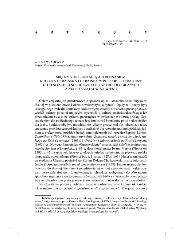 Między konfrontacją a pojednaniem / ETNOGRAFIA POLSKA 2008 t.52