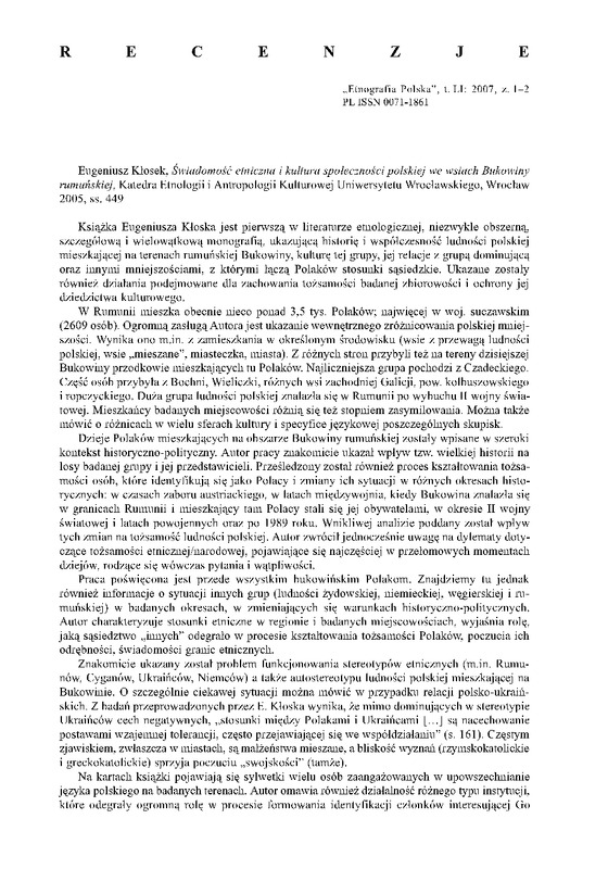 ETNOGRAFIA POLSKA 2007 t.51, s.241-249