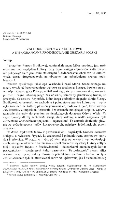 Zachodnie wplywy kulturowe a etnograficzne zróżnicowanie obszaru Polski / LUD 1996 t.80