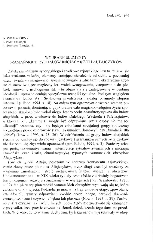 Wybrane elementy szamańskich elementów inicjacyjnych Ałtajczyków / LUD 1996 t.80
