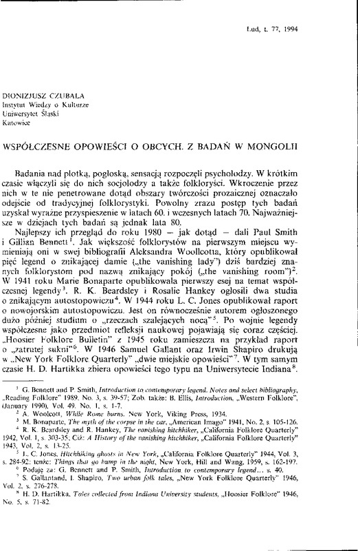 Współczesne opowieści o obcych / LUD 1994 t.77