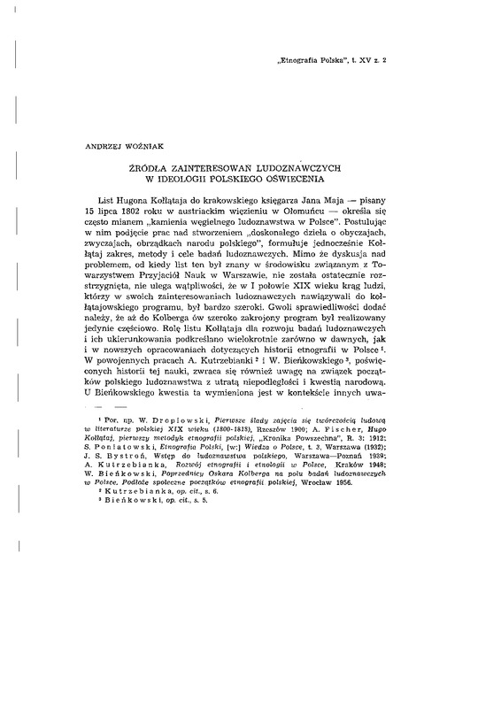 Źródła zainteresowań ludoznawczych w ideologii polskiego Oświecenia / ETNOGRAFIA POLSKA 1971 t.15 z.2