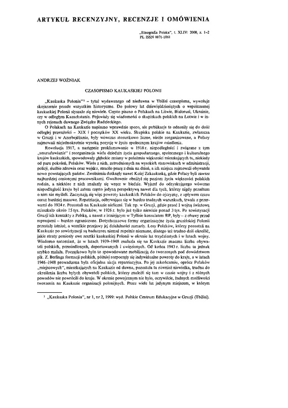 Artykuły recenzyjne, recenzje i omówiena / ETNOGRAFIA POLSKA 2000 t.44