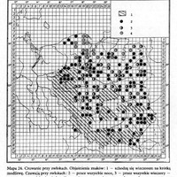Mapa 24. Czuwanie przy zwłokach. Objaśnienia znaków: 1 — schodzą się wieczorem na krótką