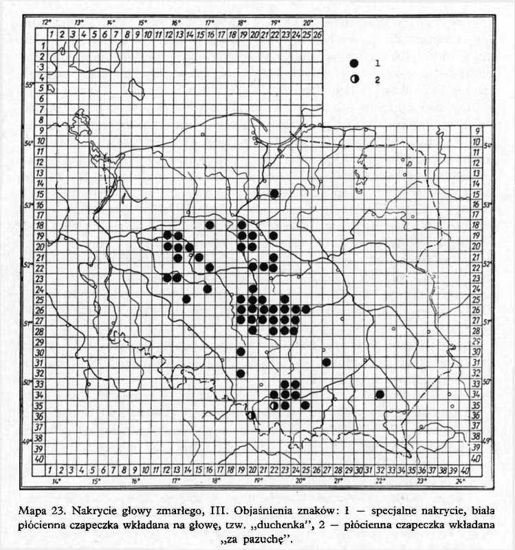 Nakrycie głowy zmarłego, III/ Komentarze do Polskiego Atlasu Etnograficznego (mapy)