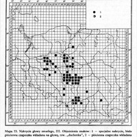 Mapa 23. Nakrycie głowy zmarłego, I I I . Objaśnienia znaków: 1 — specjalne nakrycie, biała