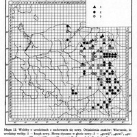 Mapa 12. Wróżby o urodzinach z zachowania się sowy. Objaśnienia znaków: Wierzenie, że