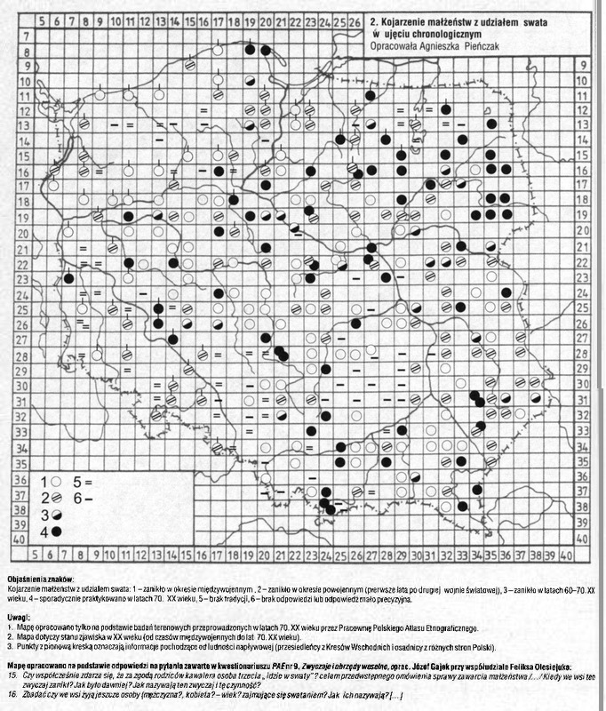 Komentarze do Polskiego Atlasu Etnograficznego t.8. Agnieszka Pieńczak : Zwyczaje i obrzędy weselne, cz.2: Rola i znaczenie swata w kojarzeniu małżeństw pod red.nauk.Zygmunta Kłodnickego (mapa nr 2)