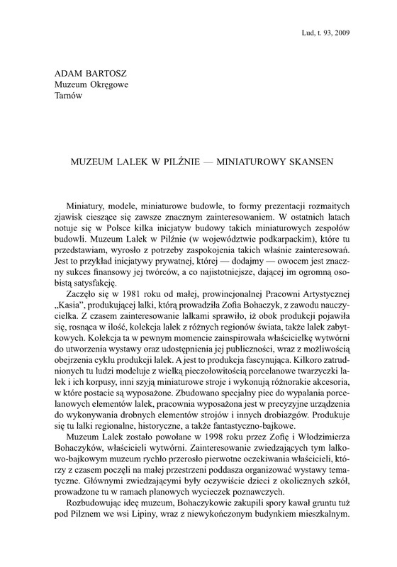Muzeum lalek w Pilźnie - miniaturowy skansen/LUD 2009 t.93
