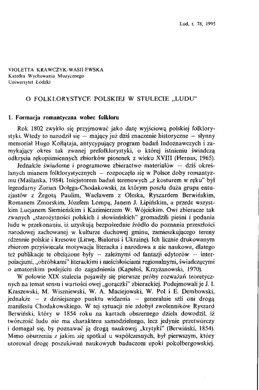 with the role of the journal "Lud" in the history of Polish folklore studies, treating as specifically,