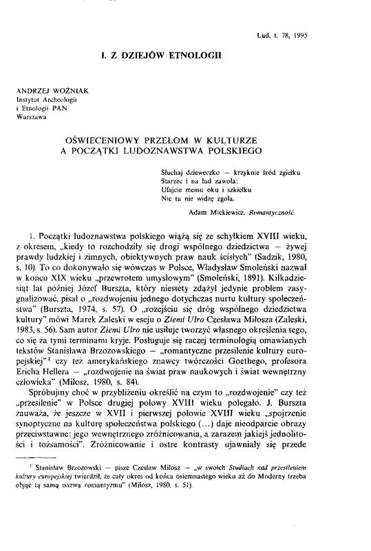 Oświeceniowy przełom w kulturze a początki ludoznawstwa polskiego / LUD 1995 t.78