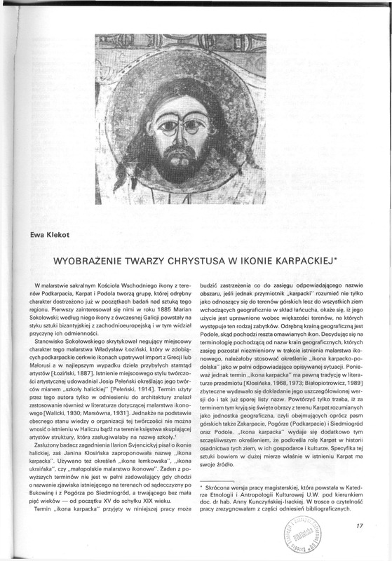 Wyobrażenia twarzy Chrystusa w ikonie karpackiej / Polska Sztuka Ludowa - Konteksty 1992 t.46 z.1