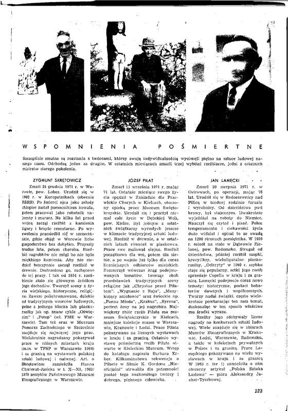Wspomnienia pośmiertne: Zygmunt Skrętowicz,Józef Piłat,Jan Lamęcki / Polska Sztuka Ludowa - Konteksty 1972 t.26 z.2