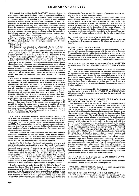 but w e present also an interview with Peter Brook and articles by Eugenio