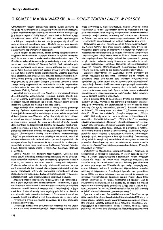 O książce Marka Waszkiela "Dzieje teatru lalek w Polsce" / Polska Sztuka Ludowa - Konteksty 1991 t.45 z.3-4
