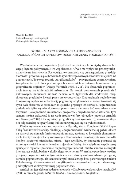 Dżuba - miasto pogranicza afrykańskiego /ETNOGRAFIA POLSKA 2010 t.54 z.1-2