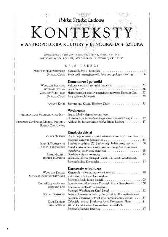 Spis treści / Polska Sztuka Ludowa - Konteksty 2002 t.56 z.3-4