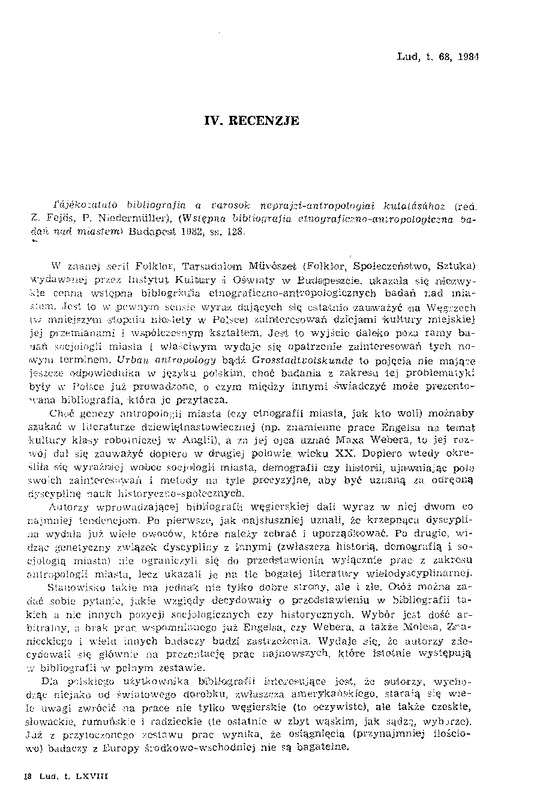 il/ydawa!wj przez In"tytut Ku.l 'ury ,i Oświaty w BUJdalPeslZcie,ukazała się ~1Jiezwykle cenna ws,tc;p:1a bibJog,rioafia etnograficzno-antropologicznych
