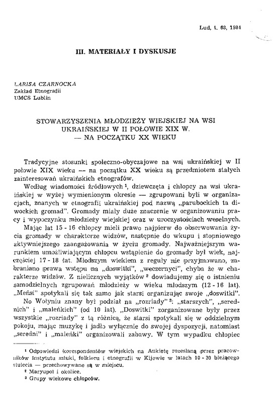 Według wiadomości źródłowych 1, dziewczęta i chłopcy na wsi uk'raińskiej w wyżej wymienionym