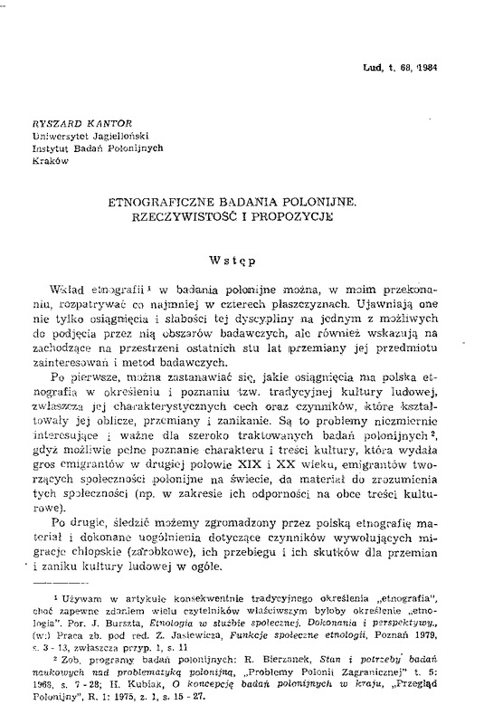 Etnograficzne badania polonijne / LUD 1984 t.68