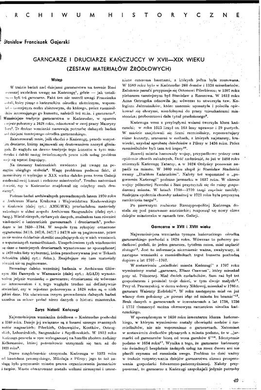 v(iliili, kliny pisząc o kańczuckim ośrodku złotniczym, wspomiał o tamtejszym cechu zbiorowym, do którego, prócz rzemieślików interesującego go kunsztu, należeli też m.in. i garncarze .