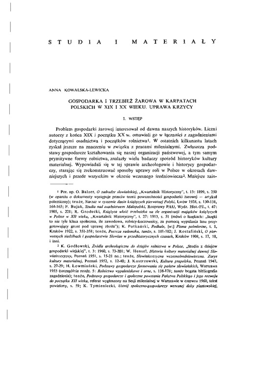 darka zrębowo-wypaleniskowa w Beskidzie Żywieckim, „Slavia Antiqua", t. 3: 1951/52, s. 209-288;