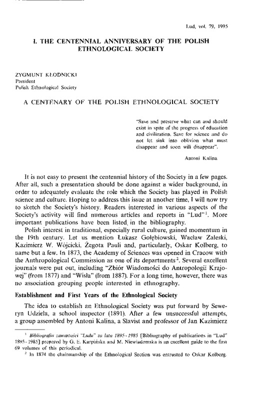 A Centenary of the Polish Ethnological Society / LUD 1995 t.79