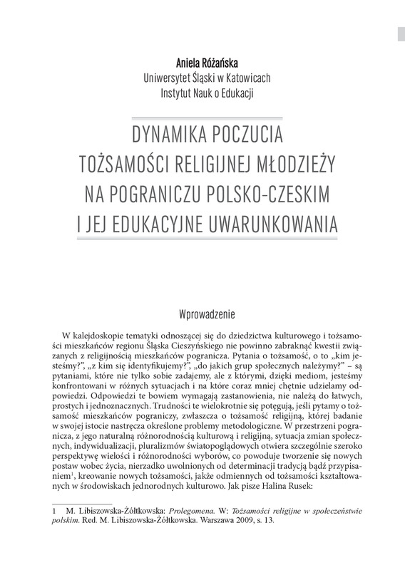 Dynamika poczucia tożsamości religijnej młodzieży na pograniczu polsko-czeskim i jej edukacyjne uwarunkowania/ Dziedzictwo kulturowe jako klucz do tożsamości pogranicza polsko-czeskiego