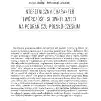 Katarzyna Marcol: Interetniczny charakter twórczości słownej dzieci na pograniczu polsko-czeskim
