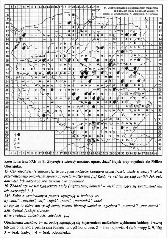 Osoby zajmujące się kojarzeniem małżeństw (od poł.XIX w. do poł XX w.), IV/ Komentarze do Polskiego Atlasu Etnograficznego (mapy)