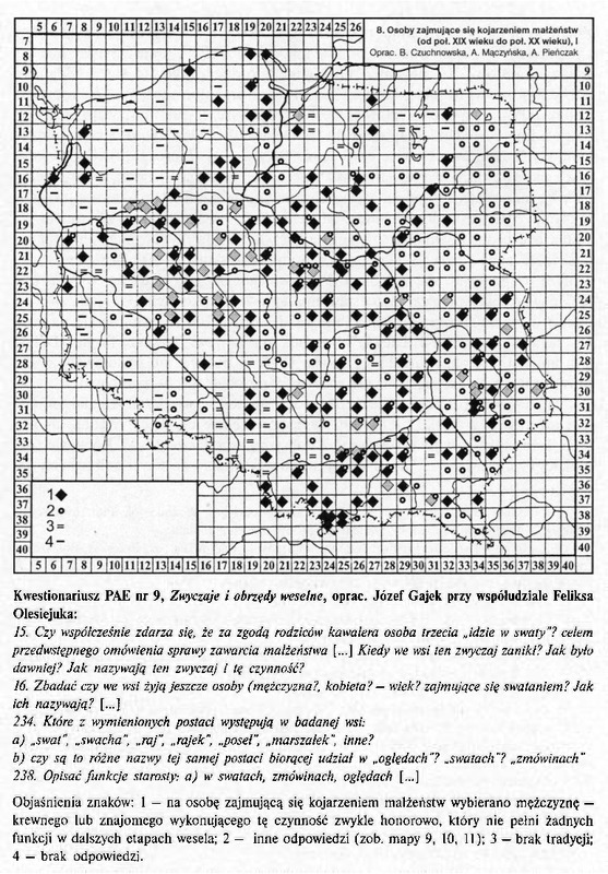 Osoby zajmujące się kojarzeniem małżeństw (od poł.XIX w. do poł XX w.), I/ Komentarze do Polskiego Atlasu Etnograficznego (mapy)
